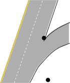 the westbound lane (green dot). |