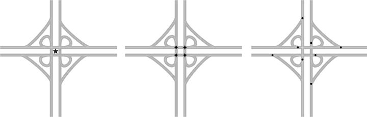 to represent the entire interchange; the second considers the intersections