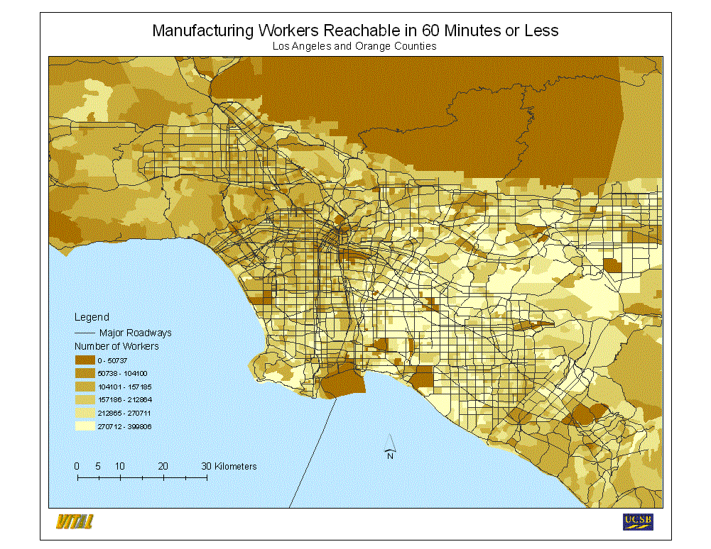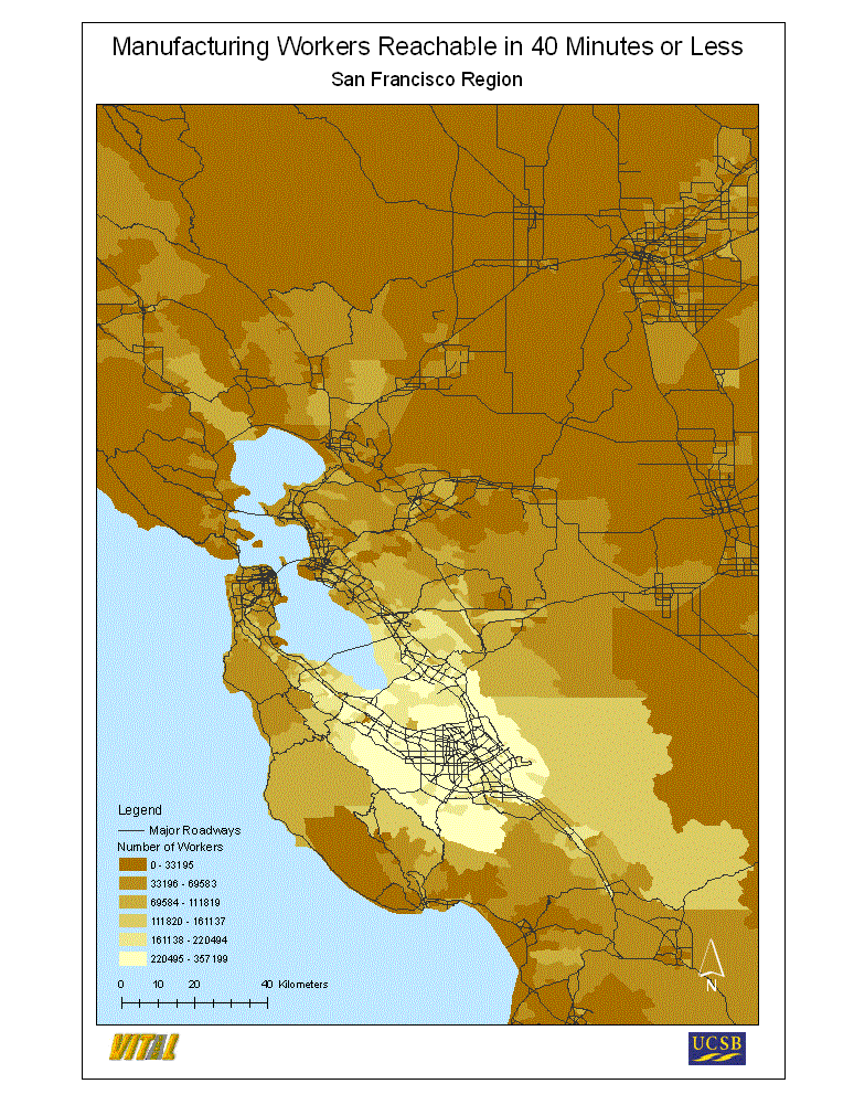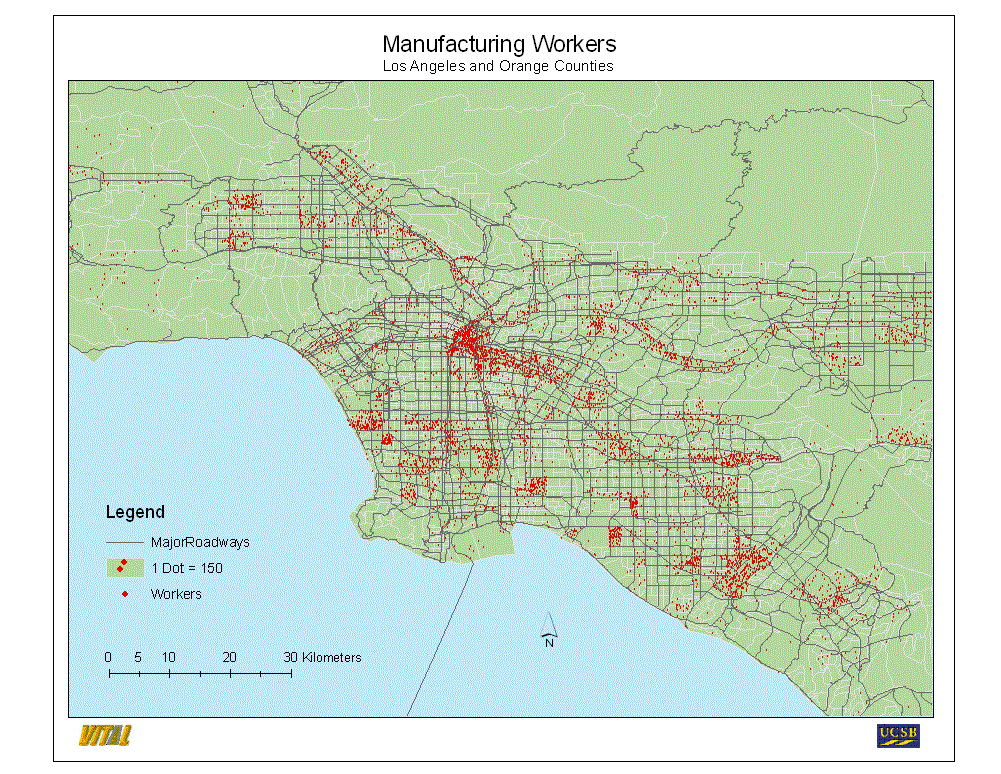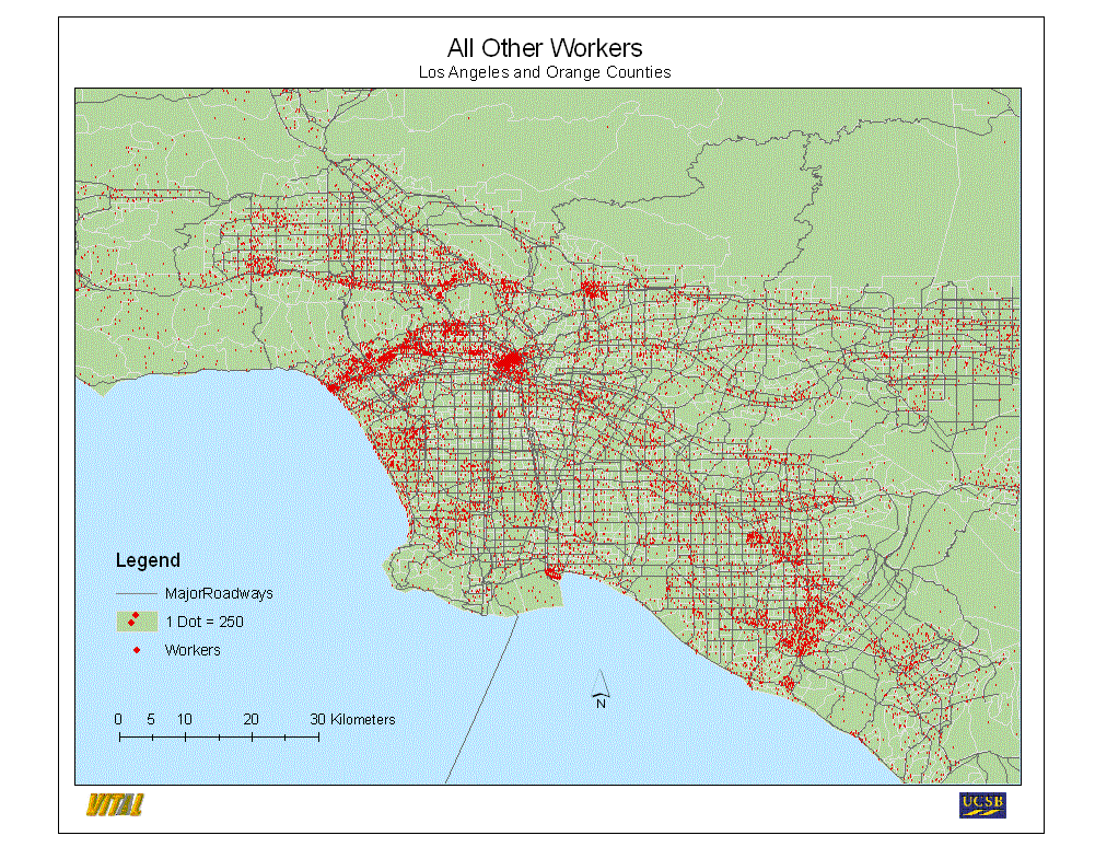 1. Numbers of workers in the following categories are mapped at their place of work, based on NAICS (formerly SIC) encoded data from the Census Transportation Planning Package (CTPP):
